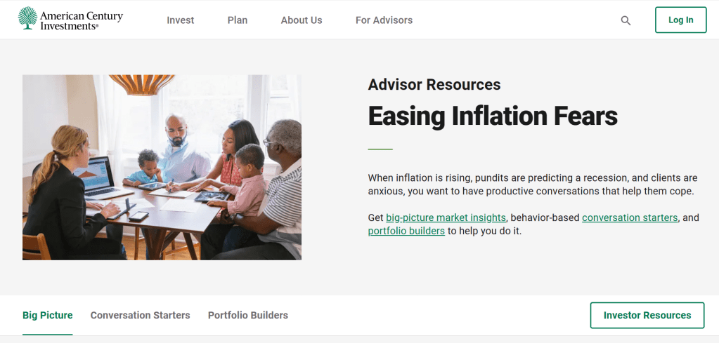 Easing Inflation Fears website for American Century Investments