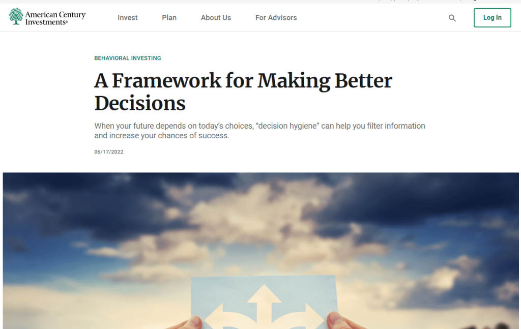 This website, created as the center of a multimedia campaign for American Century Investments, provides financial advisors with a one-stop-shop to help them support their clients through the stress of a timely investment situation.